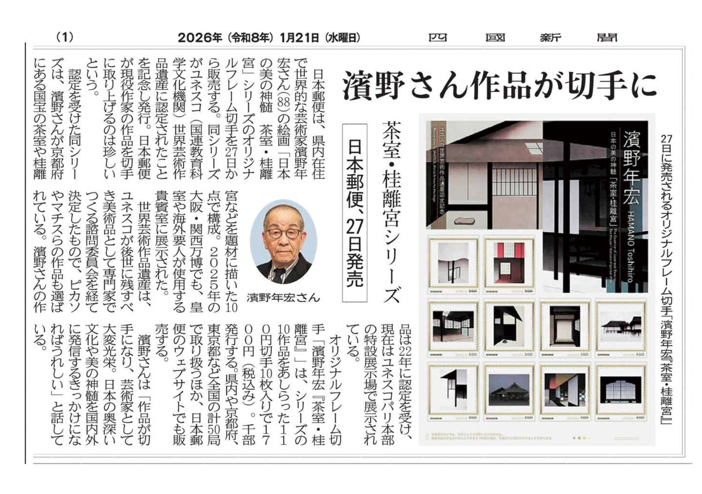 「日本の美の真髄 茶室・桂離宮」シリーズがユネスコ世界芸術作品遺産の認定を受けたことを記念し、日本郵便からオリジナルフレーム切手が発行されました。110円切手10枚入りで1700円、1000部が発行され、香川県や京都府、東京都など全国の計50局で取り扱うほか、日本郵政株式会社Webサイトでも販売されています。