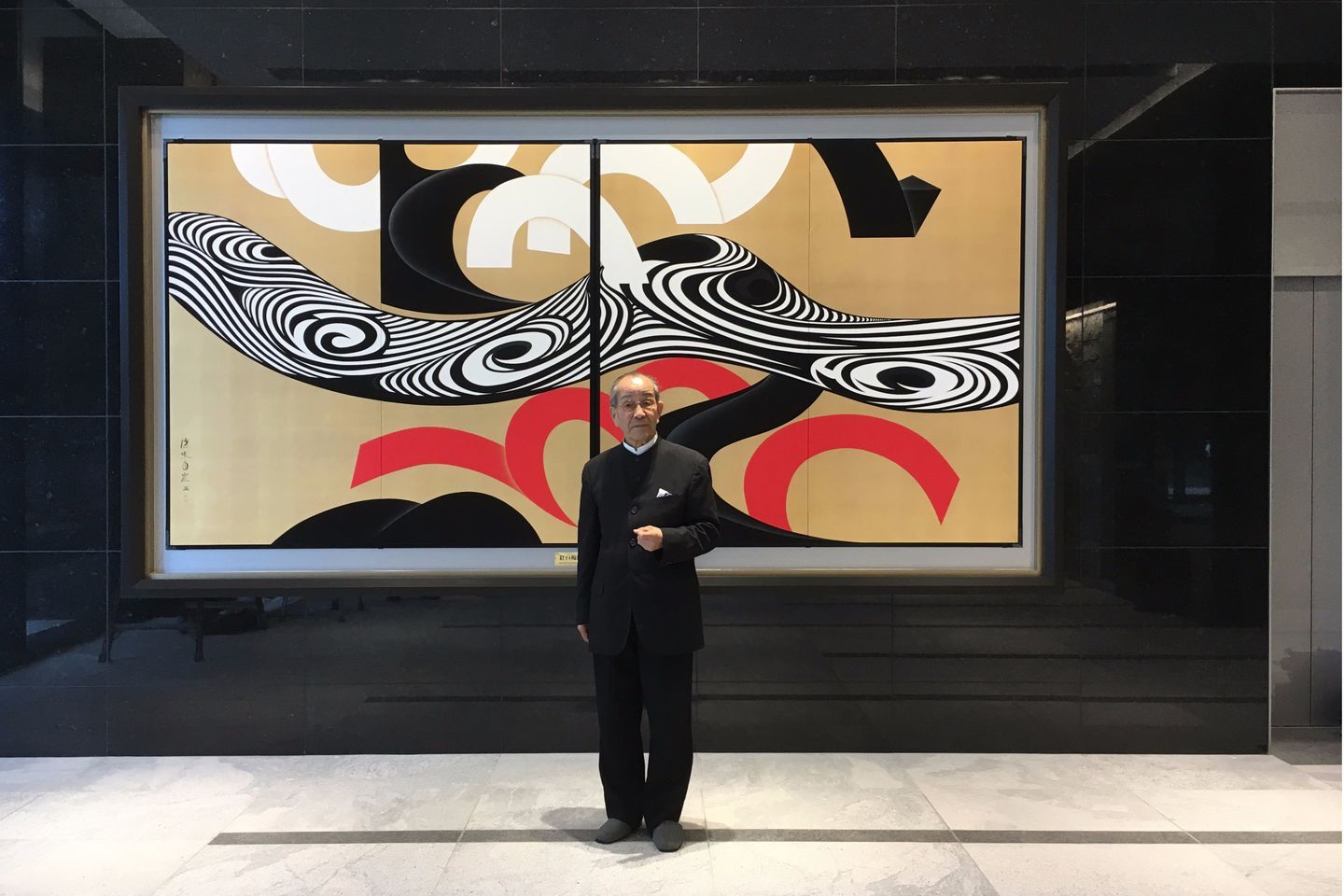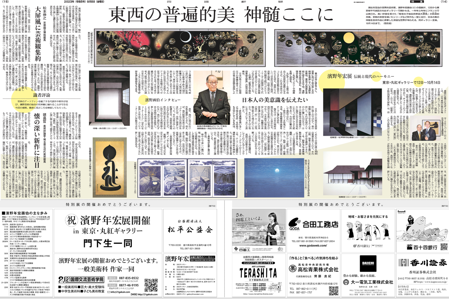 濱野の屏風作品「紅白梅図―その秘儀」が、香川銀行新本店ビルのオープン記念として、正面玄関に設置されました。 詳細▷