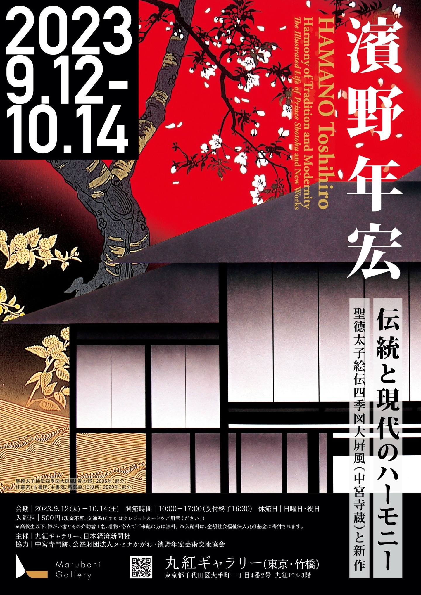 『濱野年宏 伝統と現代のハーモニー 聖徳太子絵伝四季図大屛風(中宮寺蔵)と新作』